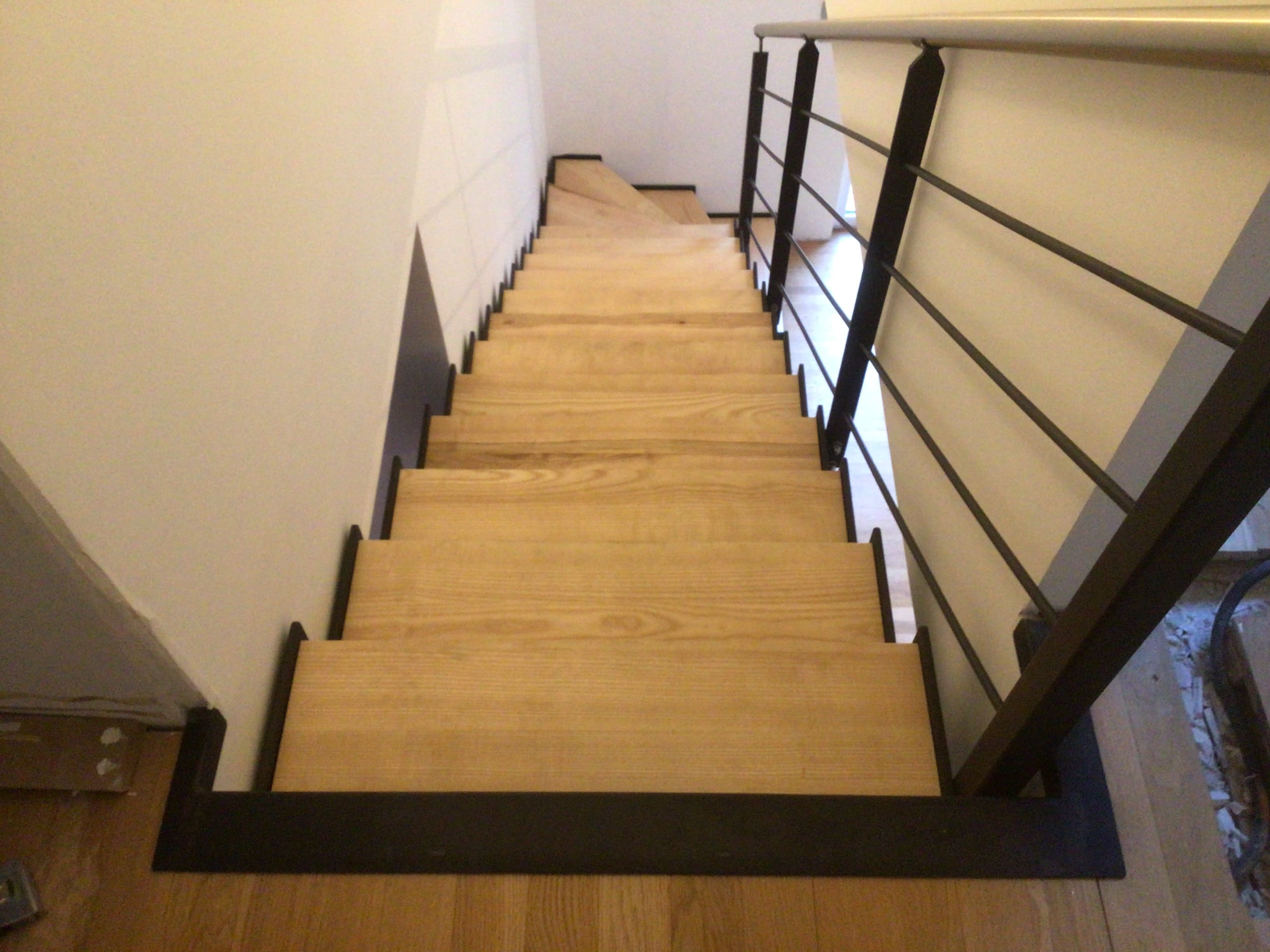 Escaliers en métal vernis et marches bois avec garde-corps en acier